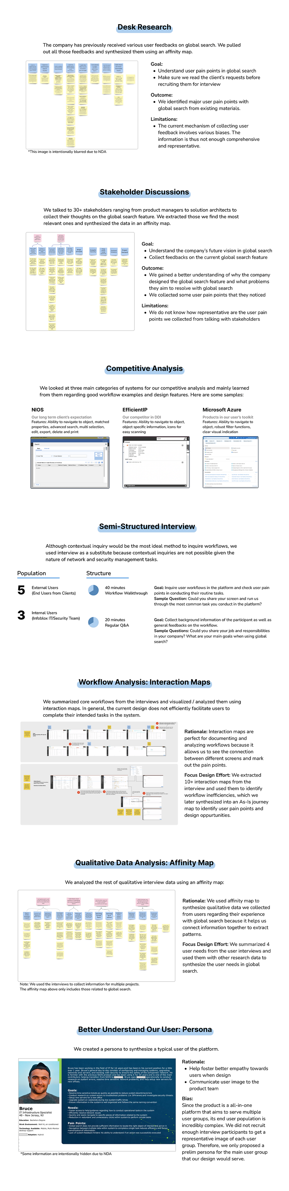 Redesigning the global search feature for a network management platform to better facilitate user flows